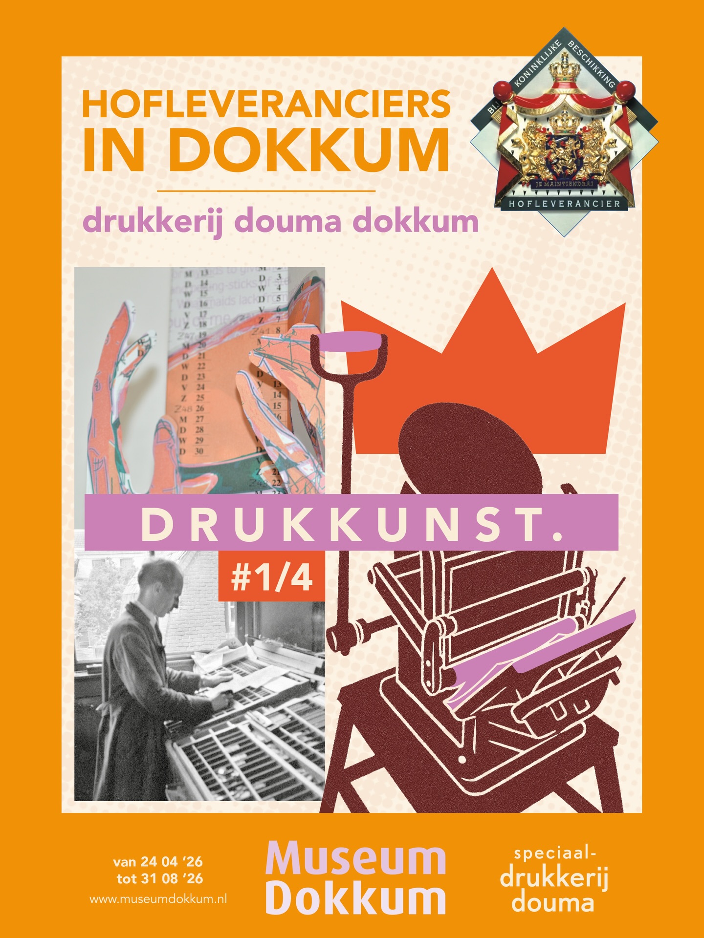 Op vrijdag 24 april opent Museum Dokkum de tentoonstelling Drukkunst – Drukkerij Douma Dokkum. Dit is de start van een nieuwe reeks tentoonstellingen over Dokkumer bedrijven die het predicaat Hofleverancier bij Koninklijke Beschikking dragen. De opening van deze expositie valt samen met een bijzonder moment: het bezoek van de koninklijke familie aan Dokkum tijdens Koningsdag.