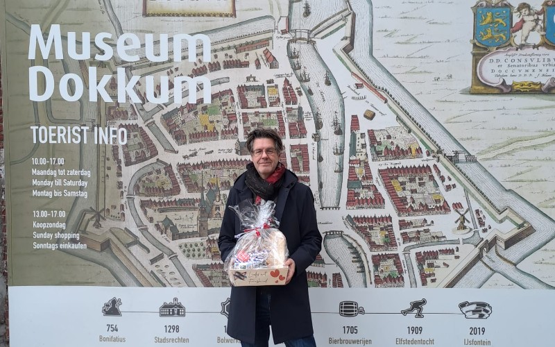 Een feestelijk moment voor Museum Dokkum: op maandagochtend 10 november werd de 30.000ste bezoeker van het jaar verwelkomd. Peter Giesen en zijn vrouw vertrokken uit Amsterdam naar Friesland voor een ochtend in Dokkum. Nietsvermoedend stapten zij over de drempel voor een bezoek aan het museum en hoorden dat zij de 30.000e bezoeker waren. Zij kregen een pakket met heerlijke Friese lekkernijen aangeboden.
